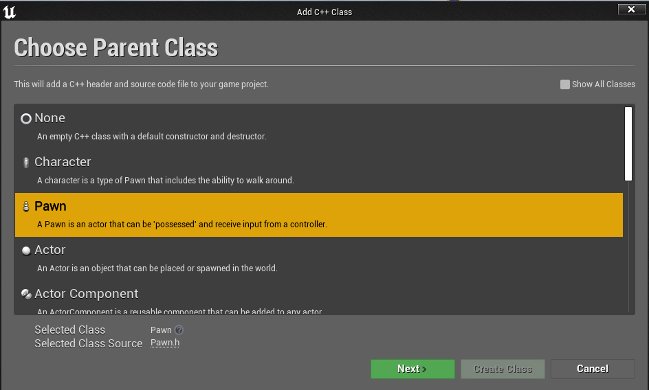 void AMyPawn::SetupPlayerInputComponent(UInputComponent* PlayerInputComponent) 함수로 이동합니다.